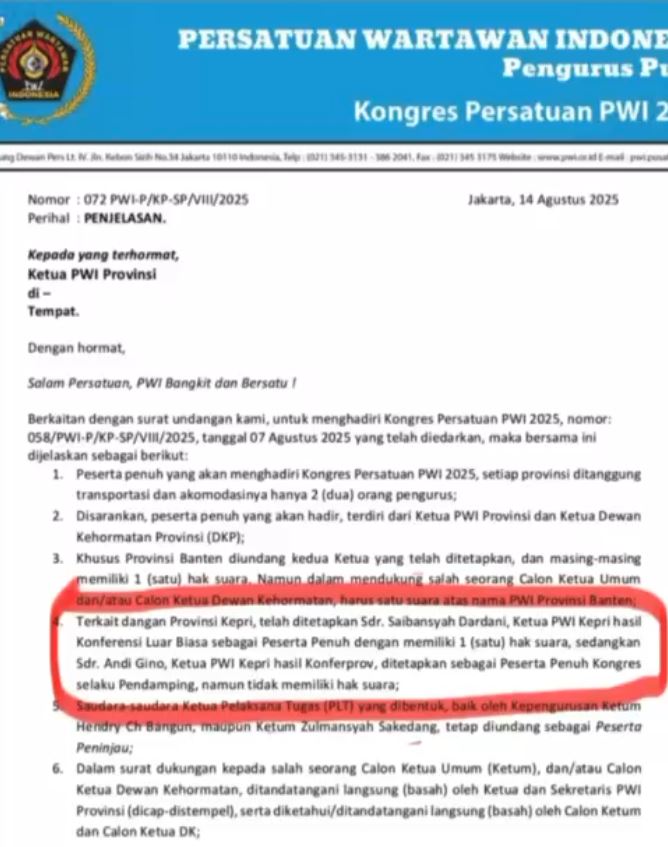 Ketua PWI Kepri Saibansah Dardani Terima Undangan Resmi Pelantikan PWI Pusat